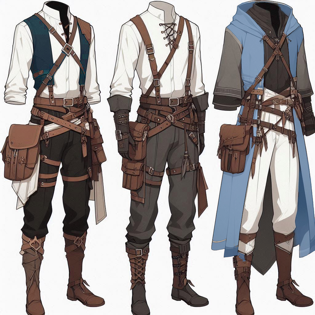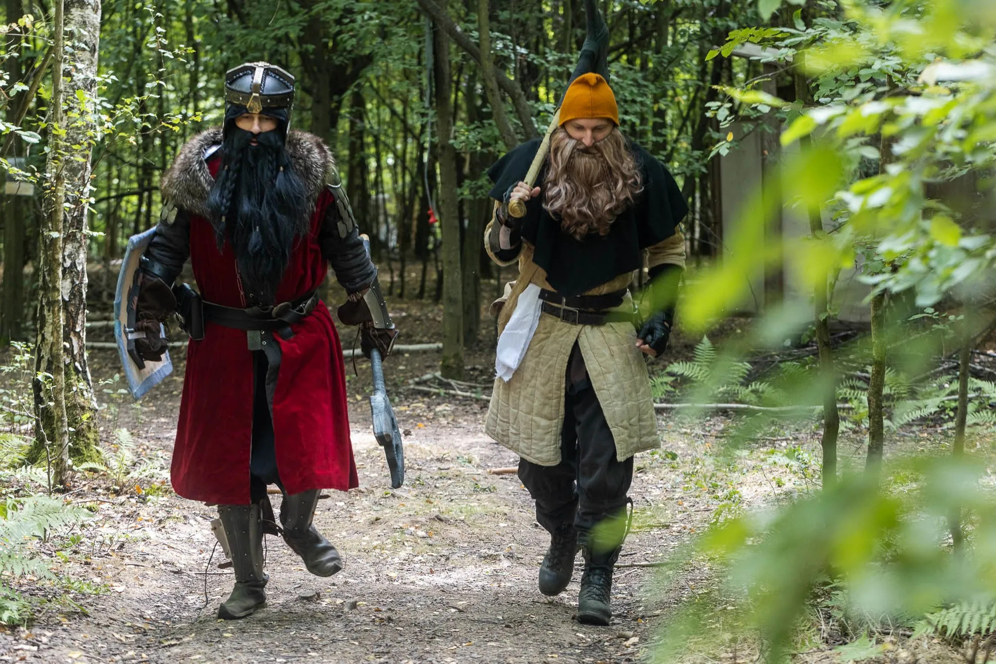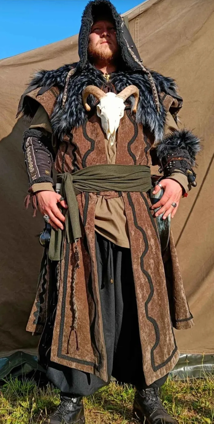 Trpaslíci z karavany působí pevně a uspořádaně. Nosí širší kalhoty a volnější kabátce s nabranými rukávy. Pyšní se velkými kapucemi, a pasy mají zdobené širokým opaskem s brašnami. Vrství hrubší vlnu s jemnějším lnem, aby oblečení zvládlo cestu i práci – a přitom vypadalo udržovaně. Barvy mají rádi výrazné: vínová, tmavě modrá, sytě žlutá, mechově zelená, okr nebo grafit, často ve dvou až třech kombinacích. Ozdoby na oděvech jsou spíš geometrické – pásové bordury, jednoduché znaky i propletence. A samozřejmě vousy: pečlivě upravené, zapletené, občas doplněné drobnými kovovými korálky. Celkový dojem: praktické, vrstvené, řemeslnicky sebevědomé.