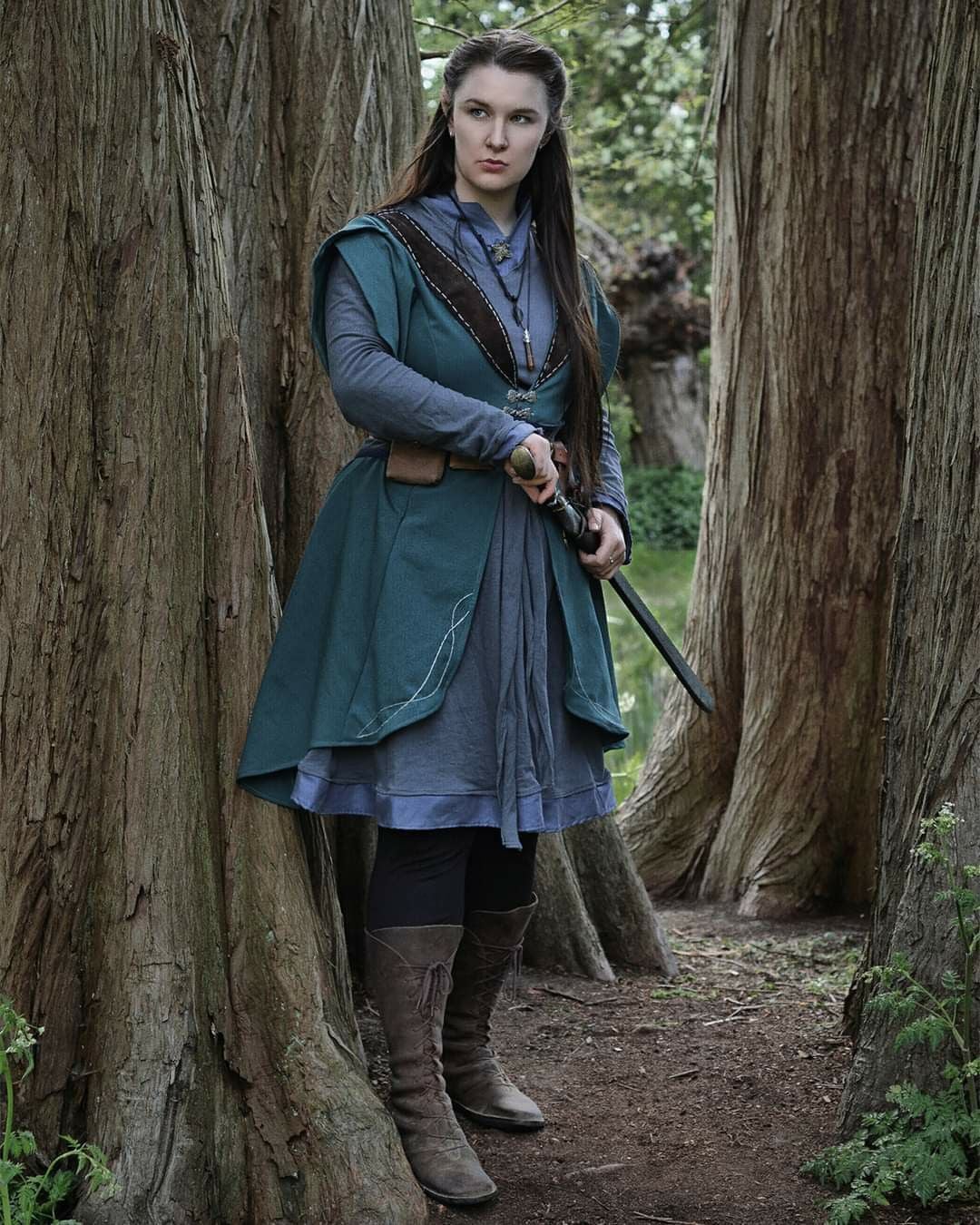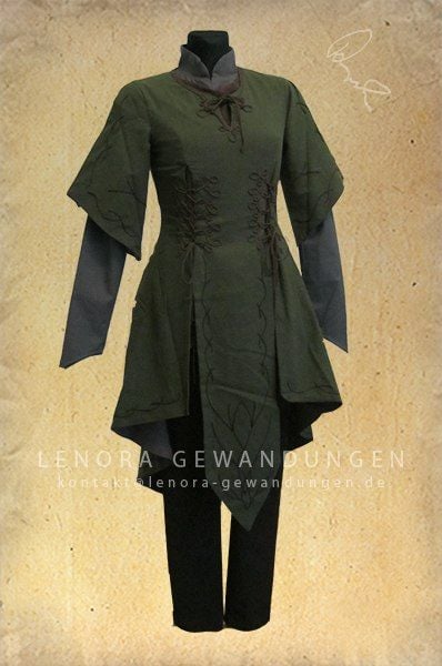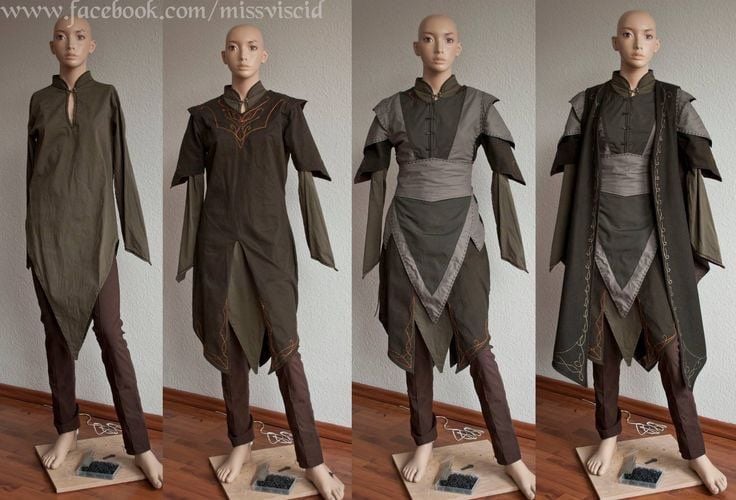 Elfové, kteří mají oblečení přizpůsobené spíše pohybu v přírodě a ne na bezpečí svých síní. Nepřijeli se bavit ani předvádět...I když to samozřejmě neznamená, že by mělo být jenom nudně paktické. Barvy nejlépe zelené přirozených odstínů.